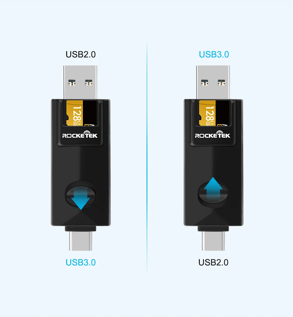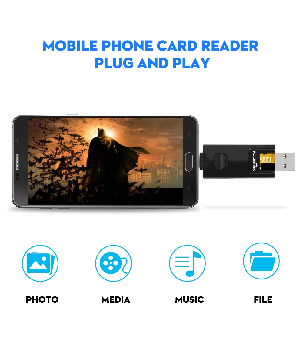 Rocketek RT-OTGC39 11 in 1 SuperSpeed USB 3.0 Card Reader with OTG funtion base on Easy portability design, with build-in mirco SD card slot