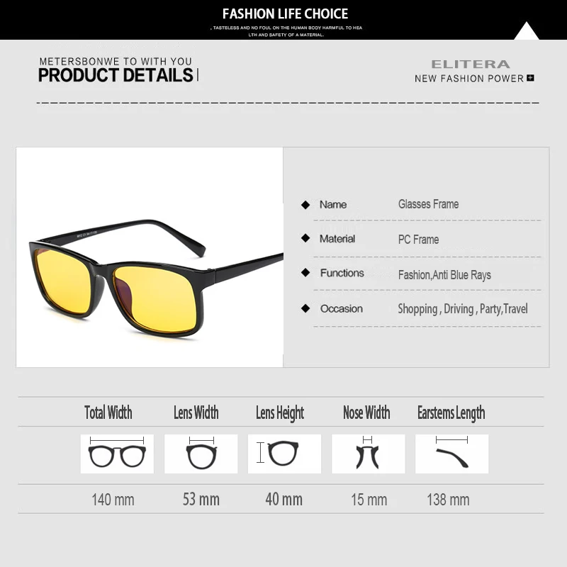 ELITERA Anti Blue Rays Computer Goggles Reading Glasses Radiation-resistant Glasses Computer Gaming Glasses Frame Eyewear