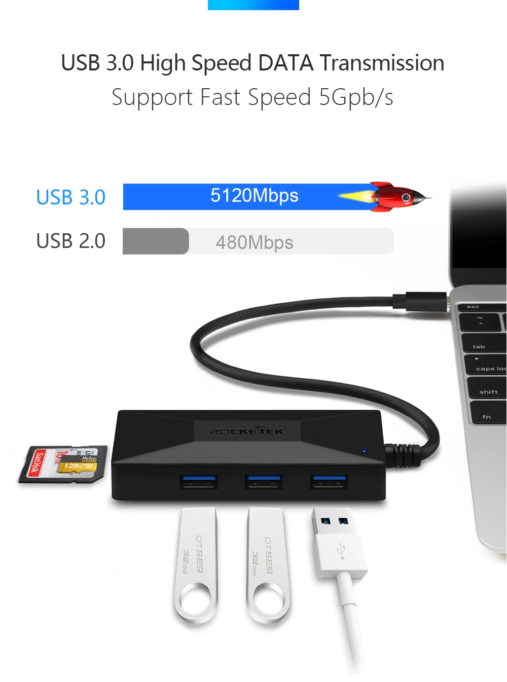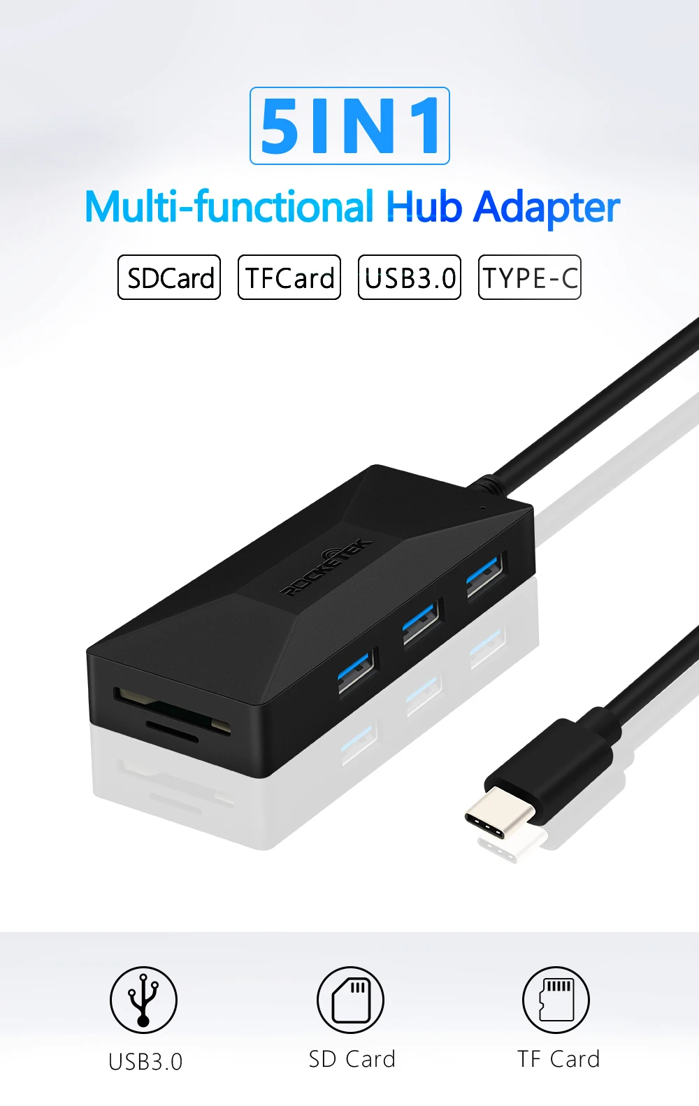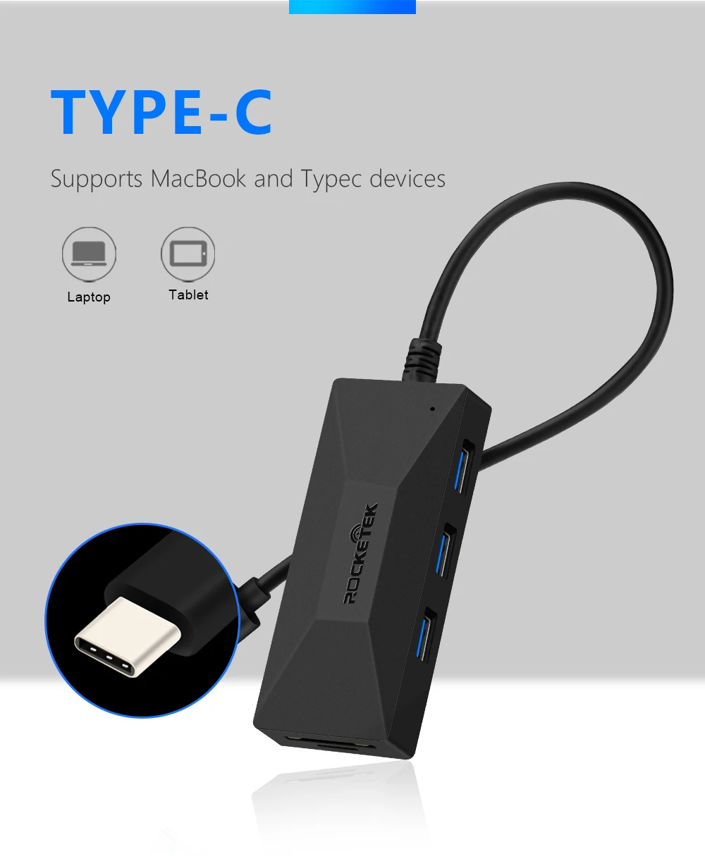 Cheapest Online - ROCKETEK Multi Type-C USB 3.0 HUB 3 port OTG Adapter Splitter SD/TF Card Reader for MacBook Air Computer PC Laptop Accessories Best Offers