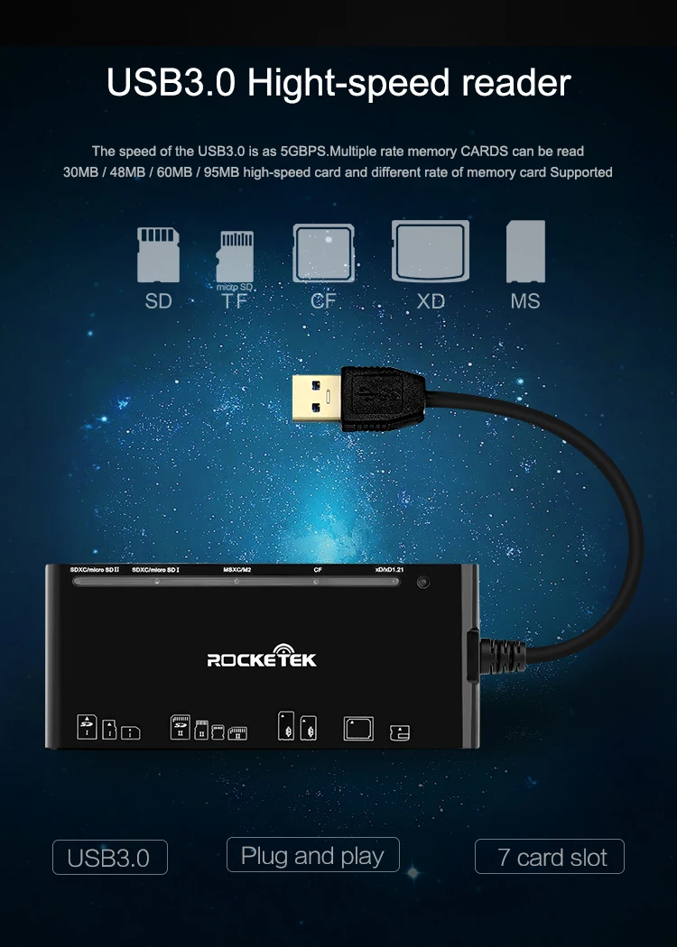 Get Cheap - Rocketek same time read 5 cards usb 3.0 multi 7 in 1 memory card reader adapter for SD/TF CF MS XD micro SD computer accessories Best Offers