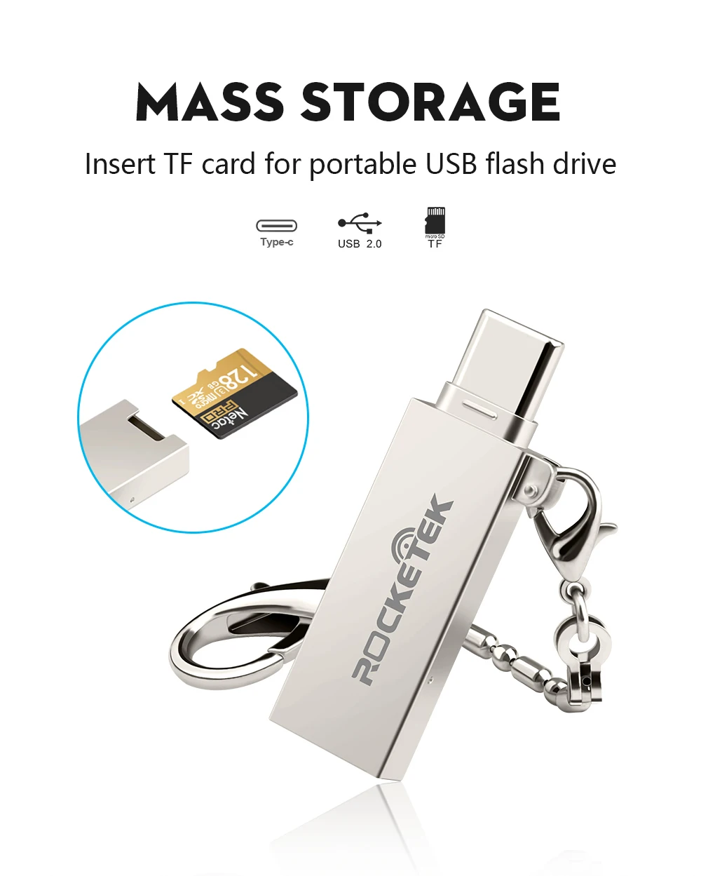 Cheap - Rocketek type-c usb 2.0 otg phone type c memory card reader Aluminum adapter for micro SD/TF pc computer laptop accessories Very Good