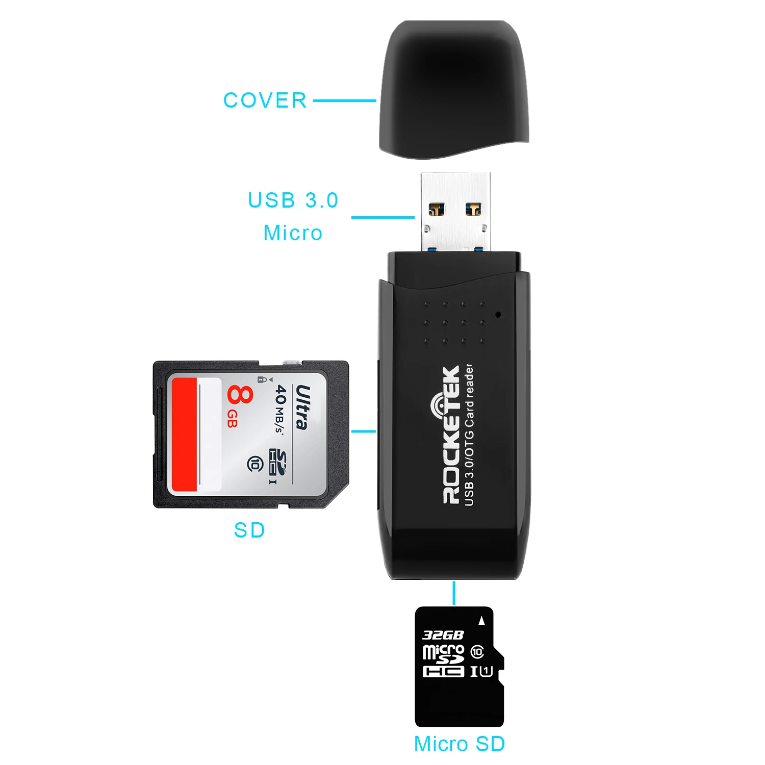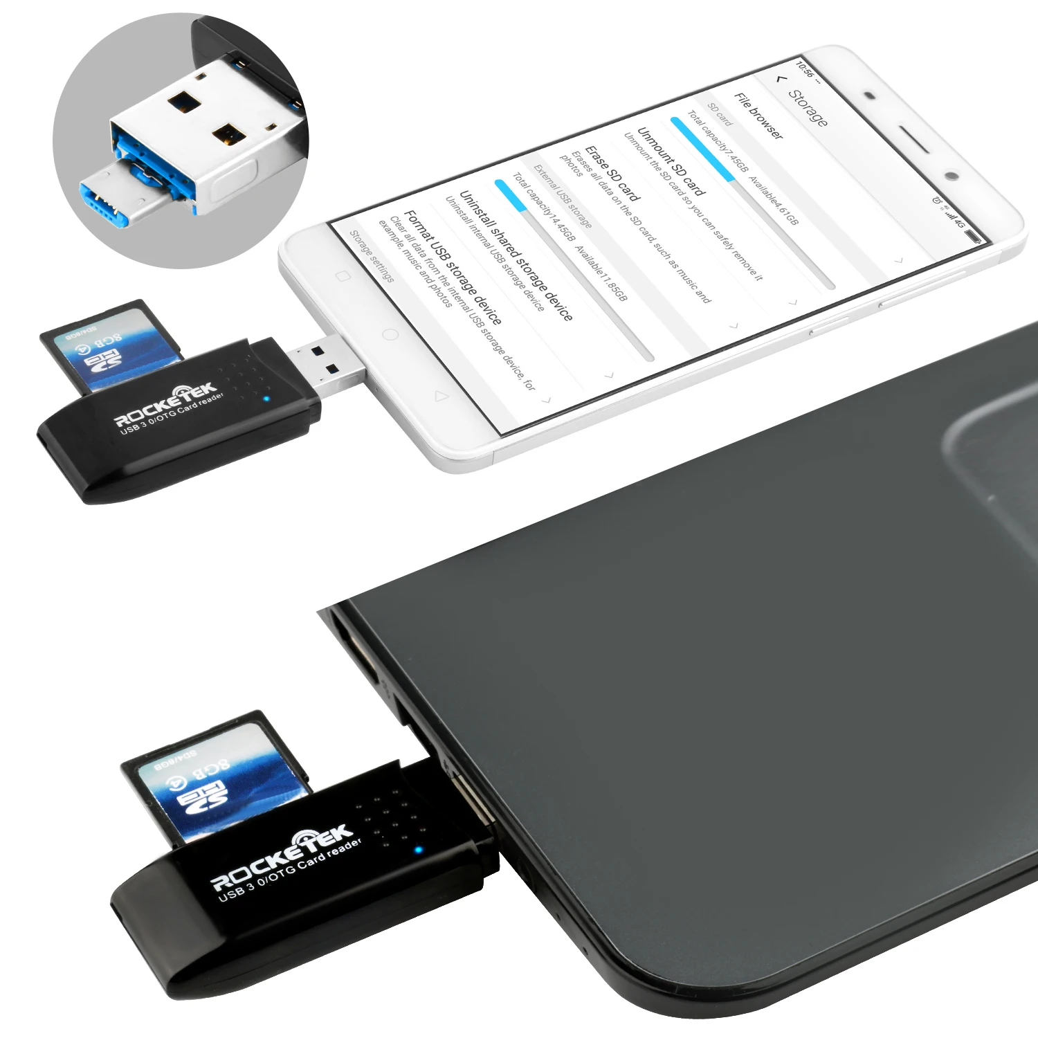 Low Cost - Rocketek usb 3.0 multi 2 in 1 memory otg phone card reader 5Gbps adapter for SD/TF micro SD for pc computer laptop accessories. Special Price