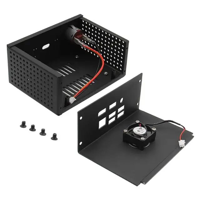 Features: 1. This is a metal case with a super quiet fan assembly. It is very easy to install. It is the perfect choice for users of X820 SSD / HDD memory board. 2. Support super quiet cooling fan; 3. For installation instructions, please refer to http://www.raspberrypiwiki.com/index.php/X820. Specification: Size: approx. 12.2cm x 9.0cm x 5.6cm /4.92x3.54x2.2in Weight: approx. 385g /13.58oz Note: When using power switch to control the power of raspberry pie and X820 storage board, please take off the Jumber cap. Please allow 1-3mm differs due to manual measurement. Due to the different display and different light, the picture may not show the actual color of the item. Thanks for your understanding. 1 x Metal Case(with 4xM3 Screws) 1 x Power Control Switch 1 x Cooling Fan(with 4pcs Screws) |