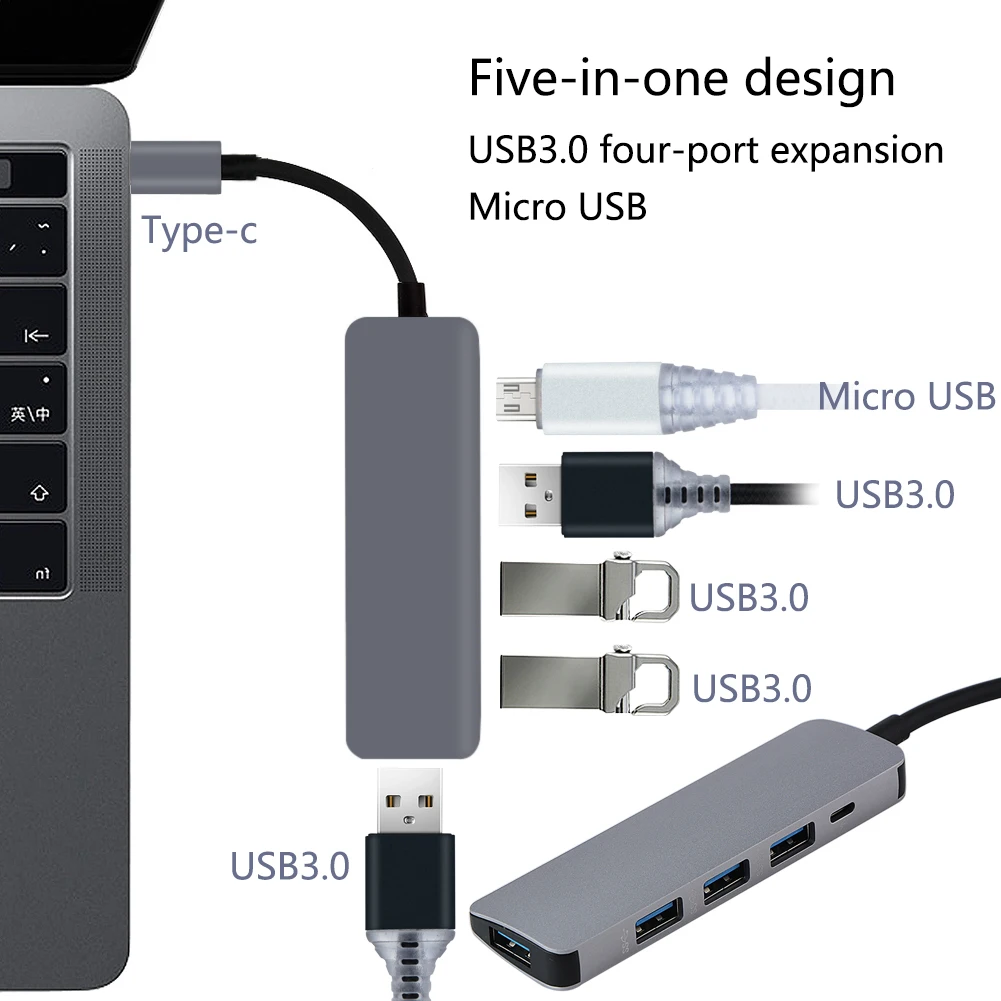 5 In 1 Usb Type C Hub Aluminium Alloy Usb 3.0 Hub Port Usb C Adapter Computer Accessories Wholesale Dropshipping