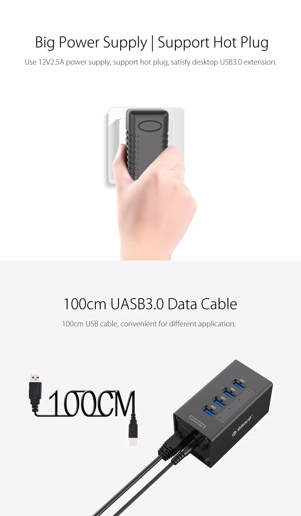 Allows you to add 4 USB3.0 USB ports at one time. 12V power Adapter provide adequate power supply and stabilize data transmission.allows you add high-power consumpution devices to this Hub, you can add 4 USB devices to your computer at the same time