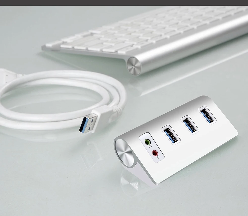 Cateck USB 3.0 3-Port Hub with Stereo Sound Adapter Combo is designed especially for laptops, tablets, and ultrabooks and expands one USB 3.0 high-speed port into three easily.