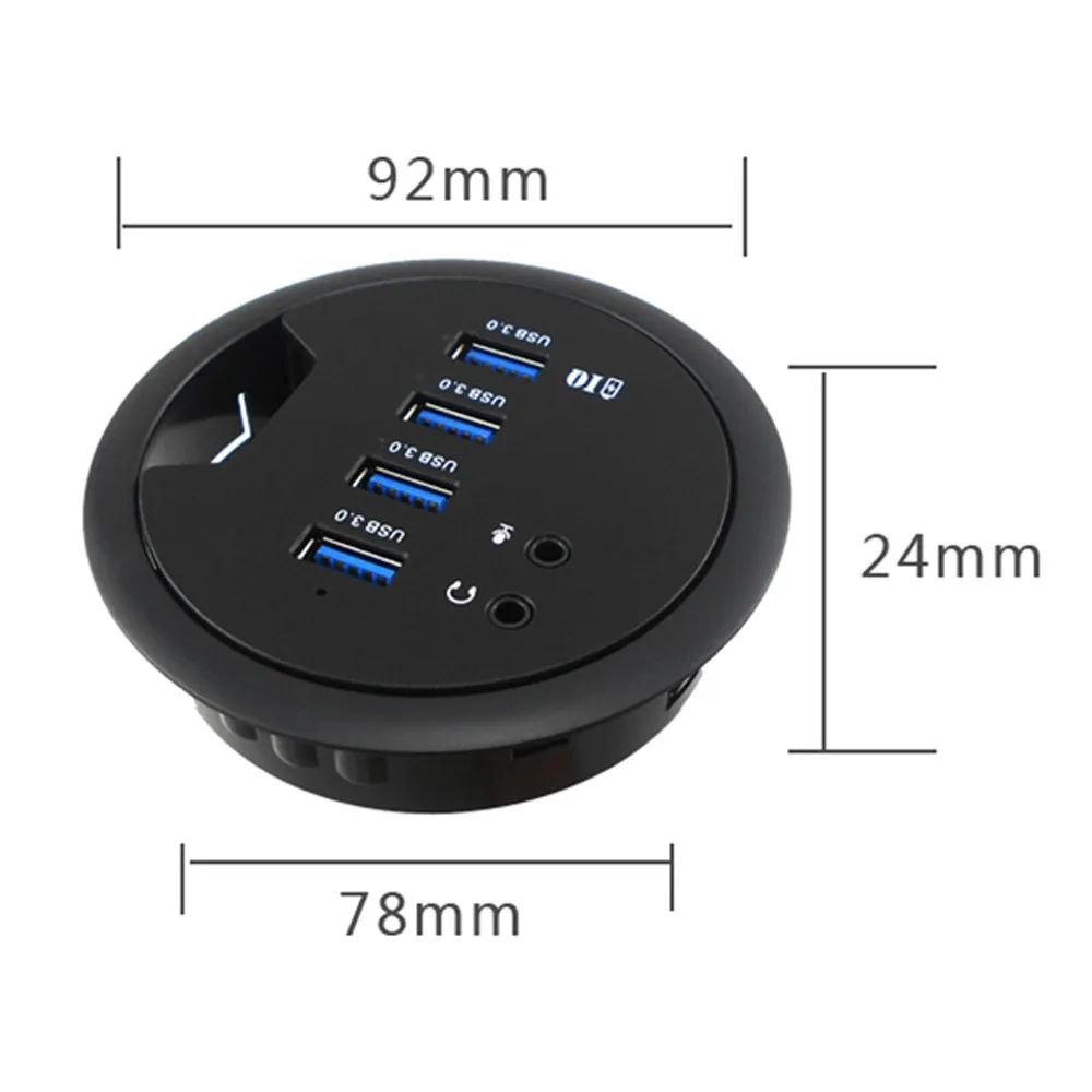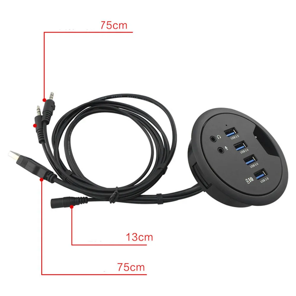 4-Port USB 3.0 HUB Adapter and External Stereo Sound AC adapter American standard power supply Mount In Desk new A30