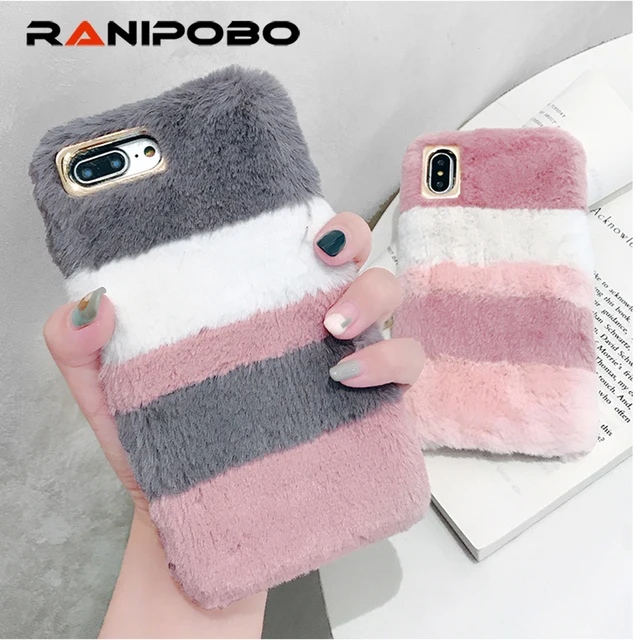 Affordable - Fashion Fluffy Mix Warm Rabbit Fur Silicon Phone Case For Apple iPhone XS 6 6s 7 8 8plus X Gradient Back Cover For iphone 6 Best Offers