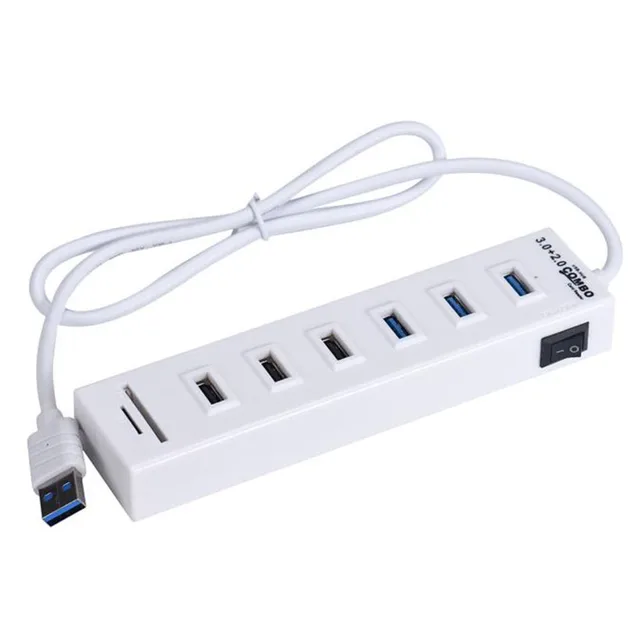 1 x 2 in1 USB Card Reader + Super Speed 5Gbs USB 3.0+2.0 6 Port Splitter HUB