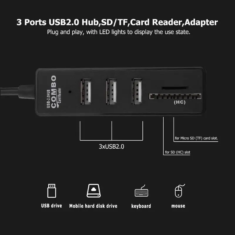 Who Sells - USB Hub 2.0 Multi usb Ports Combo SD/TF Card Reader Hub USB Splitter 3 Port usb Adapter For Computer Laptop Accessories Best Price