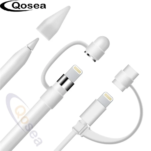 Cheap - Qosea For Apple Pencil Nib Cover Anti-lost Dustproof Cap Holder Cable Adapter Tether Kit Protector For Apple Pencil Sleeve Pouch Special Offers
