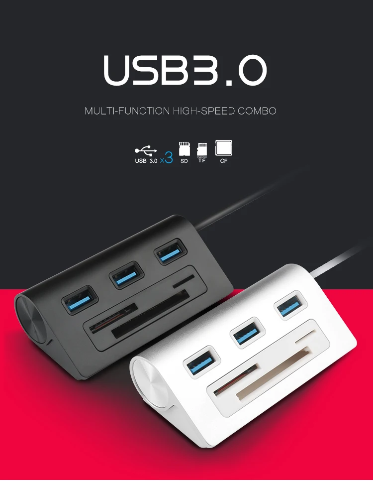 Best Price - usb 3.0 hub 3 port Aluminum adapter splitter SD/TF CF Card Reader for MacBook computer laptop accessories Very Good