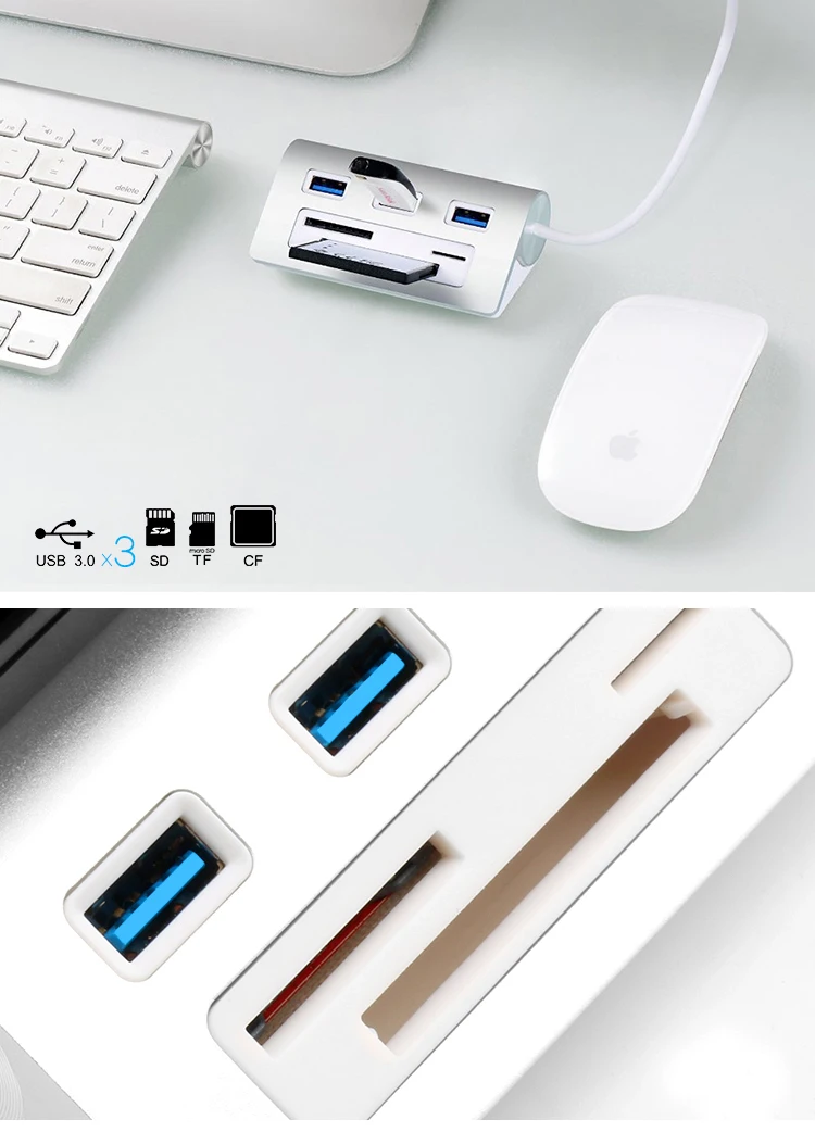 usb 3.0 hub 3 port Aluminum adapter splitter SD/TF CF Card Reader for MacBook computer laptop accessories