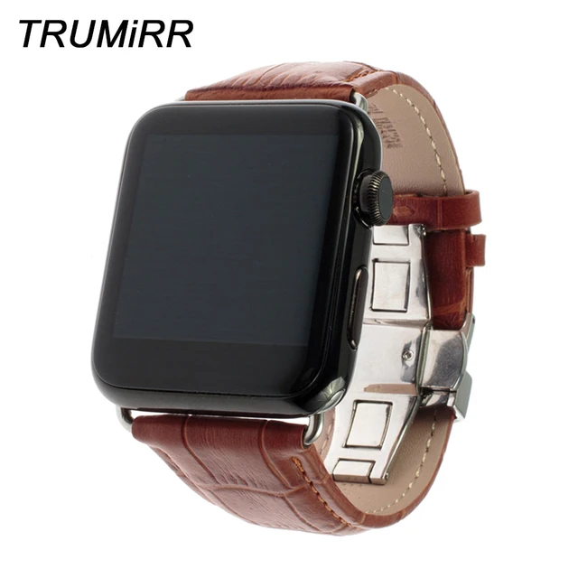 22mm 24mm Genuine Leather Watch Band Butterfly Clasp for Apple Watch / Sport / Edition 38mm 42mm all Versions