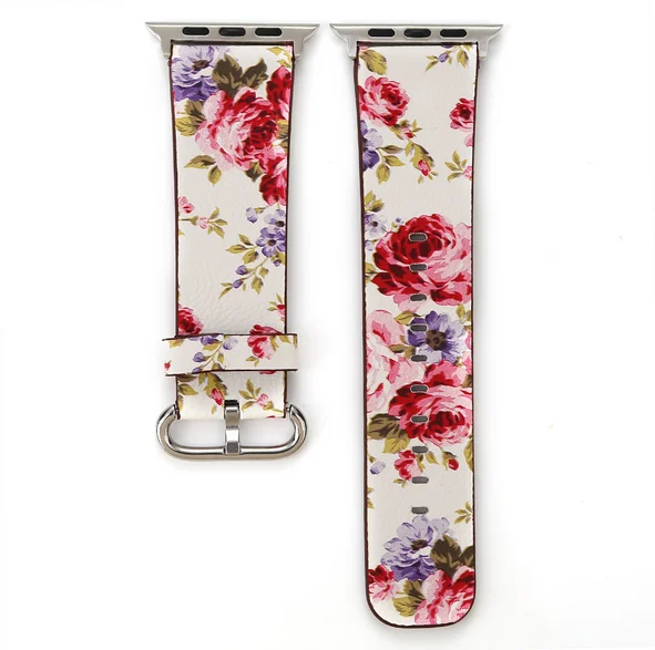 Compare Prices - Leather Watch Band Flower Strap Floral Prints Wrist Watch Bracelet For Apple Watch 38mm 42mm Series 1 Series 2 Series 3 Best Offers