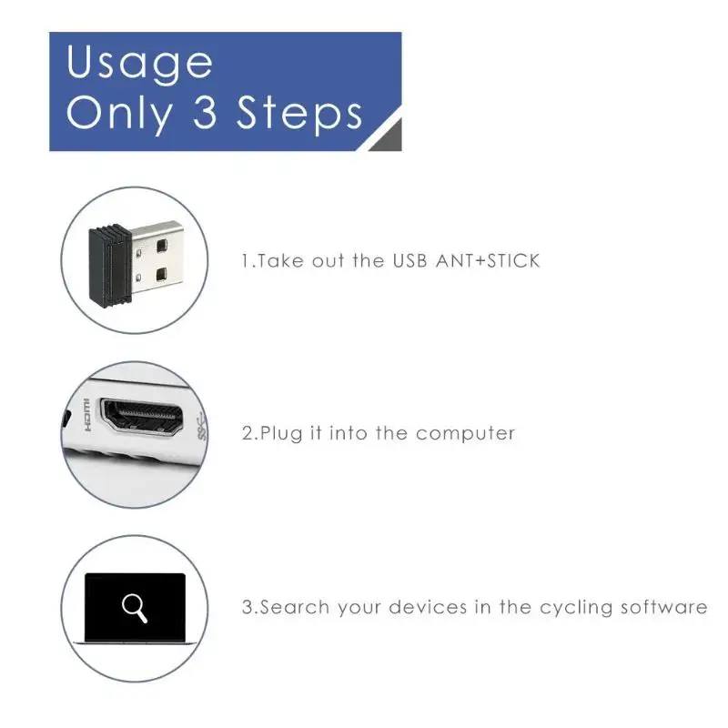 Features: 1. This ANT+ USB stick receives activity data if the compatible fitness device is within range. It is suitable for Garmin products and cycling games, must-have for cycling enthusiasts! 2. ANT+ wireless communications protocol; up to 8 channels. 3. Receive ANT+ wireless radio and translate it into USB protocol for computer software. 4. Plug into the USB port of a computer and search for the cycling software, easy to use. 5. Suitable for Garmin, for Zwift, for Wahoo, for Bkool. 6. Mini size and light weight, very convenient to carry. Specifications: Transmission range: 5 meters (the best performance is within 3 meters) Size: 1.9 x 1.5cm/0.75 x 0.59" Material: ABS Weight: 8g 1 x ANT+ USB Stick Adapter