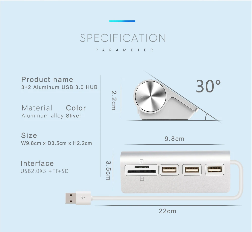 USB 2.0 Hub with SD/TF Card Reader