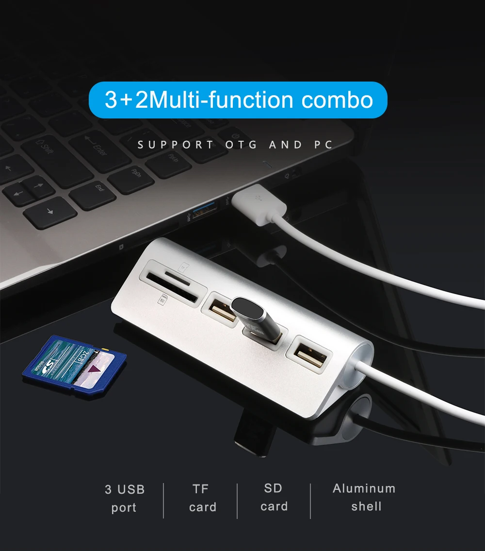 Best Price - Rocketek multi usb 2.0 hub 3 port adapter splitter Aluminum SD/TF Card Reader for MacBook Air computer laptop accessories Wonderfull