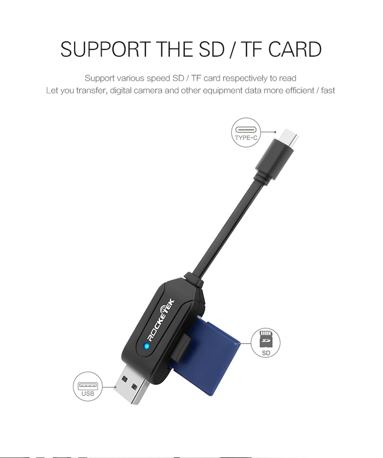 Best Price - Rocketek type-c usb 2.0 otg phone type c multi 2 in 1 memory card reader for SD TF micro SD computer laptop accessories Very Recommended