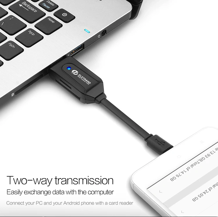 1. Two Slot Card Reader with USB 2.0 OTG --- Support SD , SDHC , SDXC , MMC / Micro SD(HC/XC) , T-Flash up to 256GB