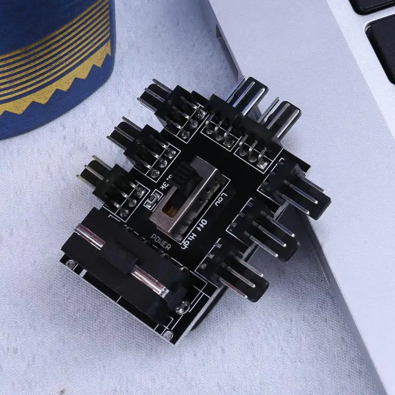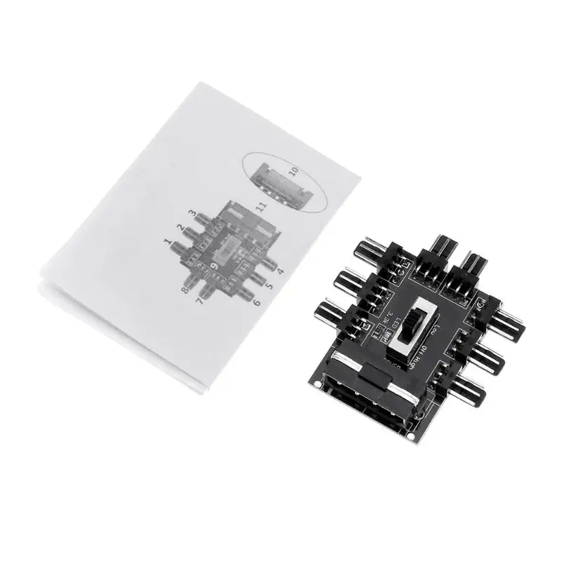 8 Way Cooling Fan 3pin Power Cable Extender Hub Accessory for Desktop PC 8 Way Cooling Fan 3pin Power Cable Extender Hub Part DIY Tool for PC Features: High quality durable card. With fan speed controller to adjust fan speed manually. Supports up to 8 DC 12V powered 3pin fans. With double sided EVA sticker on the back. Specification: Connector: 4pin (IDE power), 3pin (fan power cable) Color: Black 1 X PC Fan Power Cable Extender Hub 1 X User Manual |