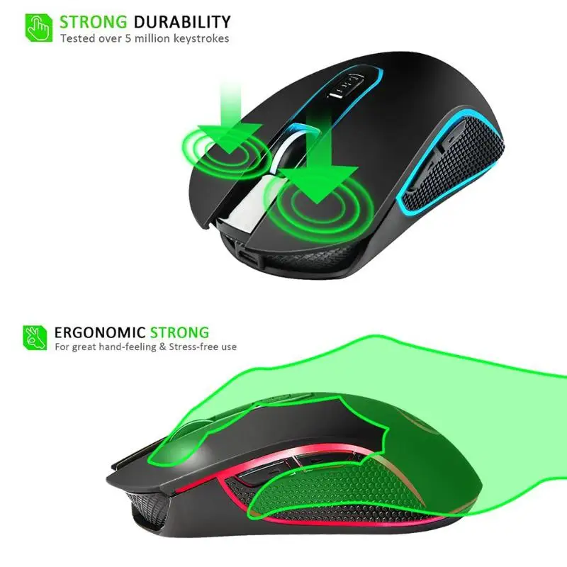 Feature: 1. High performance wireless game mouse. Provide all the basic functions of the game you need. 2. Ultra fast response buttons, tracking and sliding control have excellent performance. 3. It is suitable for laptop users and PC users. 4. No code, plug and play, feel comfortable. Specification: Model: G811 Color: Black DPI: 800/1200/1600/2400dpi Power supply: rechargeable lithium battery Charge time: 2-3 hours Switch life: 20 million times Connection: USB Working distance: 10 meters Material: ABS Battery: 1300mAh(Built-in ) Weight: 99g (containing the weight of the battery) Product size: 130mm*68mm*40mm/5.11*2.67*1.57'' Packing weight: 141g Package size: 133mm*110mm*48mm/5.23*4.33*1.88'' Light: can turn off the seven color breathing lamp Button: 6 buttons with a roller Compatible with Windows XP, Vista, Win 7, Win 8, ME, 2000 and for Mac OS or the latest version. Note: Please allow slight size differs due to manual measurement. Due to the different display and different light, the picture may not show the actual color of the item. Thanks for your understand. 1 x Wireless Mouse 1 x Charging Cable