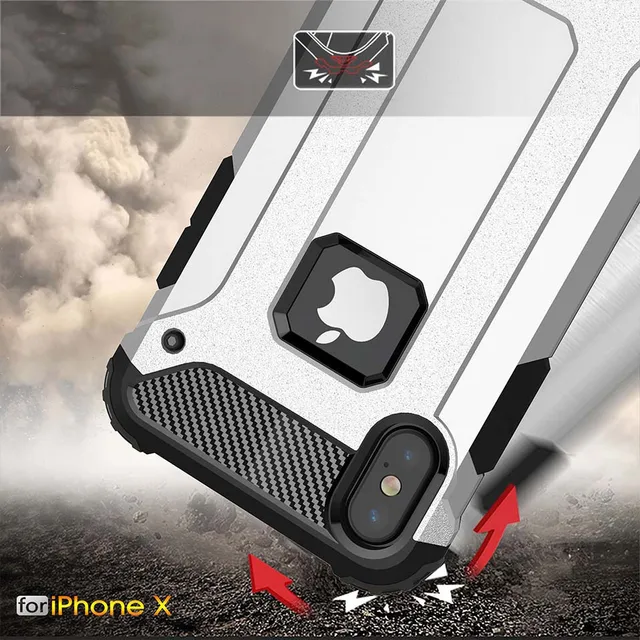 Armor Cases For Apple iPhone X 6 6S 7 8 Plus Slim Armor Anti-Shock Silicone Hybrid Hard PC Phone Case Cover For iPhone 5 5S SE