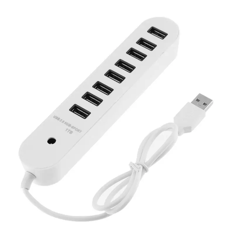 8 Ports High Speed USB 2.0 HUB Concentrator Splitter Adapter Support 1TB SATA Features: With 8 Ports High Speed USB 2.0 HUB, it is convenient to use. No external power supply and driver needed, plug and play, support hot plug. Built in current overload short circuit protection device. The use of high-quality electronic devices to ensure stable operation. Specifications: Weight: approx. 75g Material: ABS Color: White, Black Note: Please allow 1-3mm differs due to manual measurement. Due to the different display and different light, the picture may not reflect the actual color of the item. Thanks for your understanding. 1 x USB Hub |