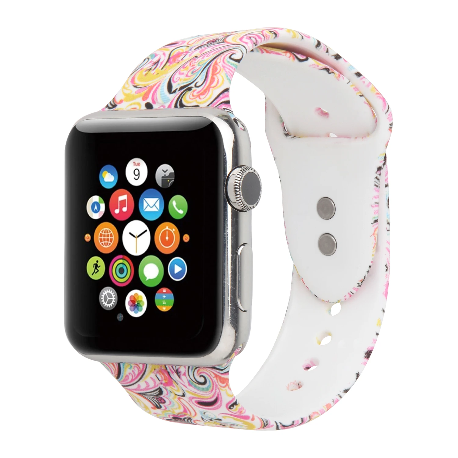 YOUKEX YOUKEX Printed Flower Silicone Sport Band for Apple Watch 38mm 42mm Fashion Porous Colorful Bracelet Wrist Band for iWatch
