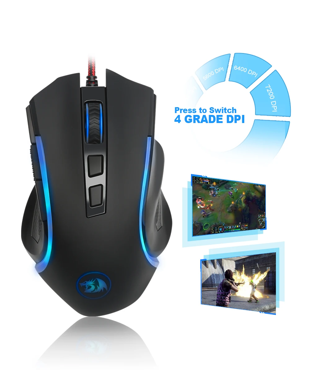 Online - Redragon USB Gaming Mouse 7200 DPI 8 buttons ergonomic design for desktop computer accessories programmable mice gamer lol PC Best Offers