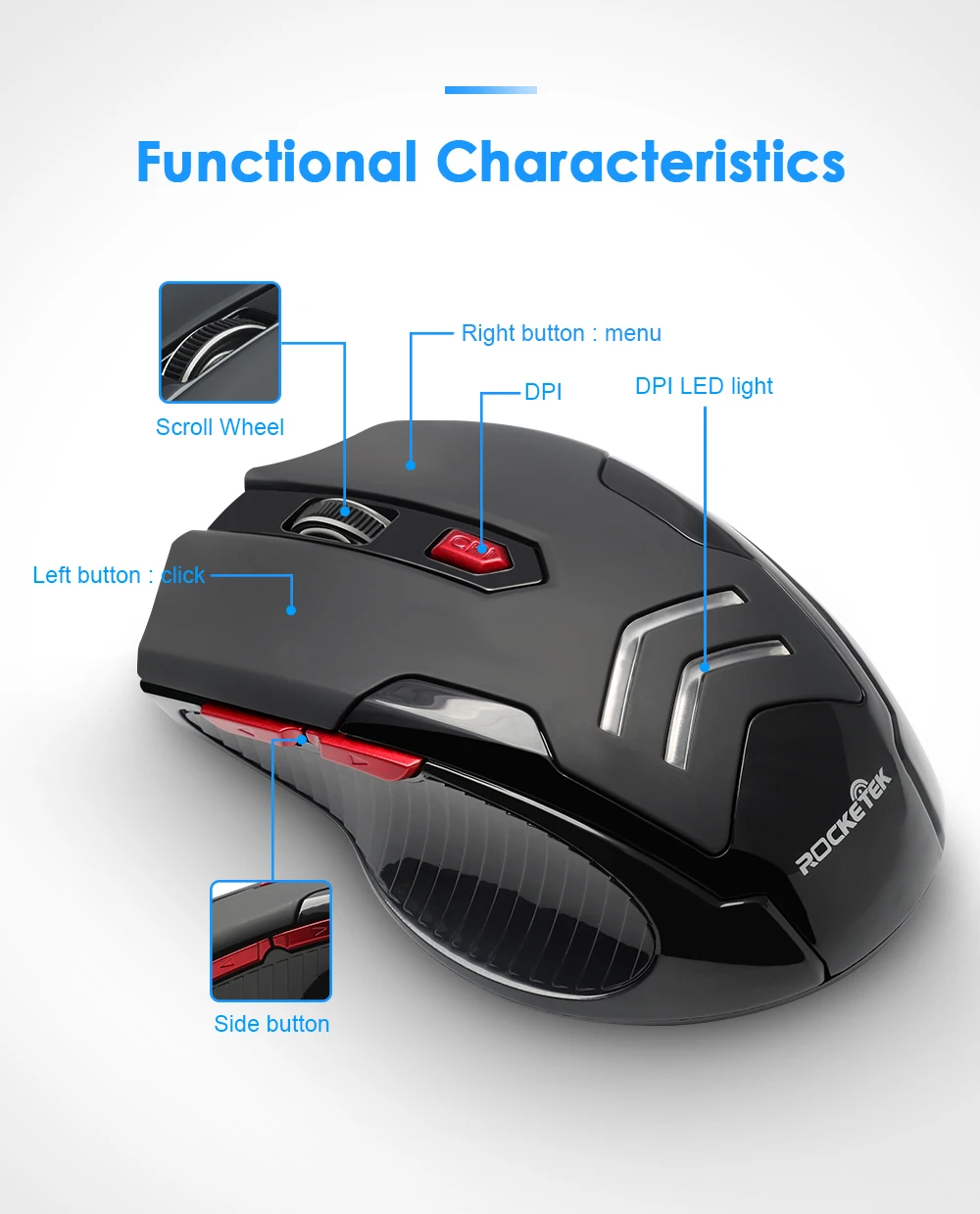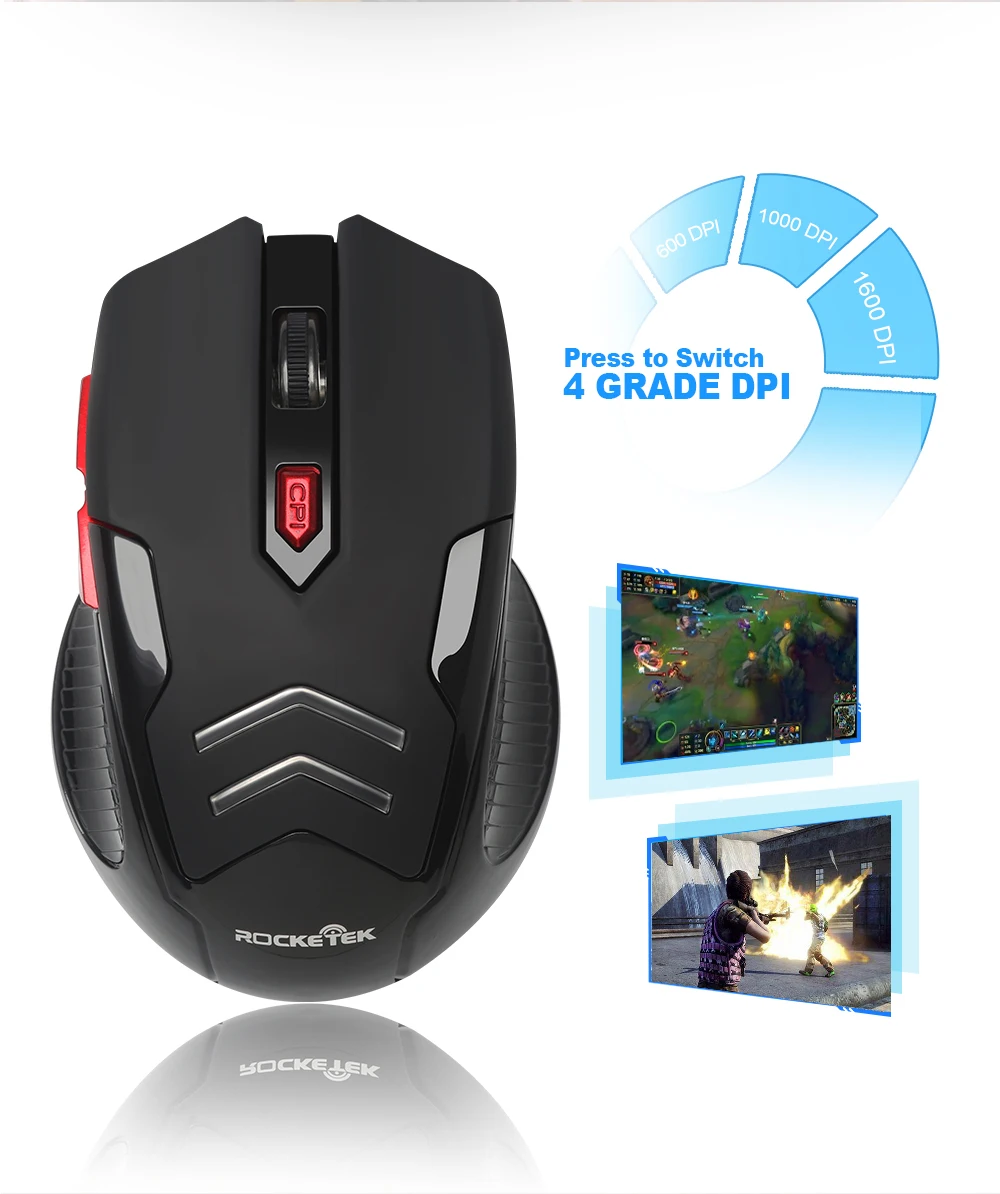 For sale - Rocketek USB Wireless Gaming Mouse 1600 DPI 6 buttons ergonomic design for 2.4G desktop computer accessories Mice gamer lol PC Special Offers